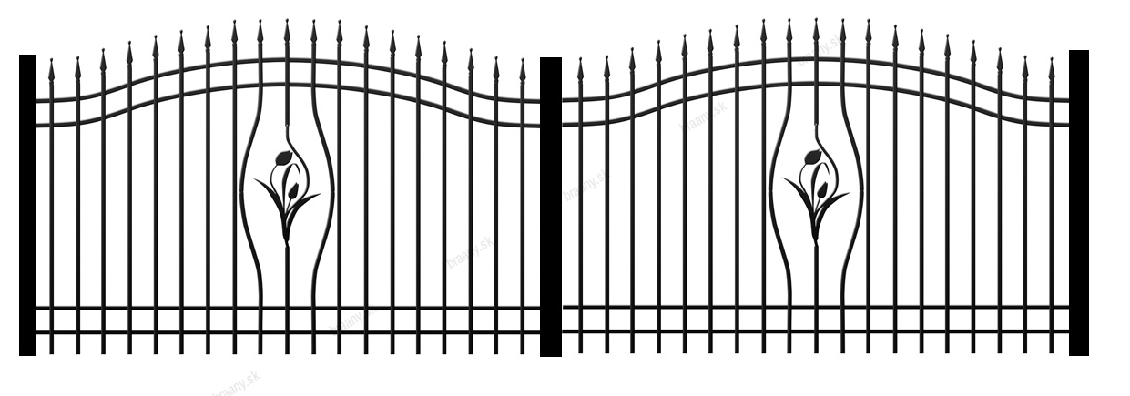 Kompletní bránový set Gabriela je složen z dvoukřídlých vrata otevírací branky o šířce 1000 mm s příslušenstvím (klika, zámek) a nosných sloupků. Ke každé dvoukřídlých bráně si můžete doobjednat automatický pohon. Všechny části se vyrábějí z kvalitního kovu, který je ošetřen základnou práškovou úpravou. Při objednávce nám prosím do poznámky uveďte typ otevírání branky, viz obr. 2. Sloupky k vratové sestavě jsou grátis!